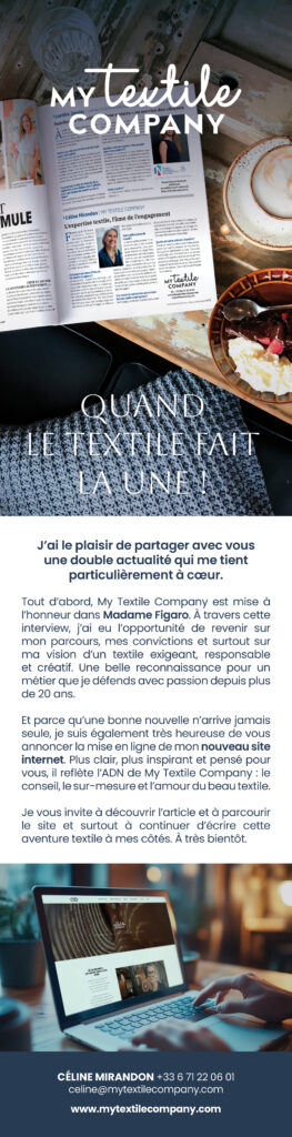 Découvrez ci-dessous comment le textile fait la une en cette fin d’année ! Vous pouvez découvrir l’article du Figaro Madame en cliquant sur le visuel ci-dessous :